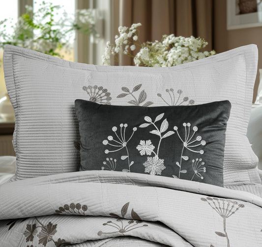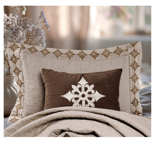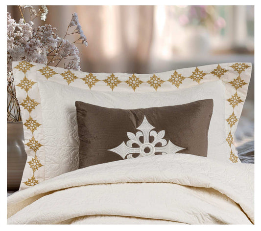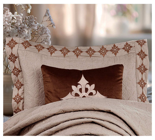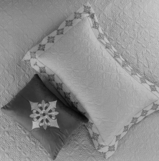✨ Solitaire King Size Embroidered Quilted Bedcover Set – 5 Pc | Luxury Bedcover + Pillow Covers + Cushions with Filler