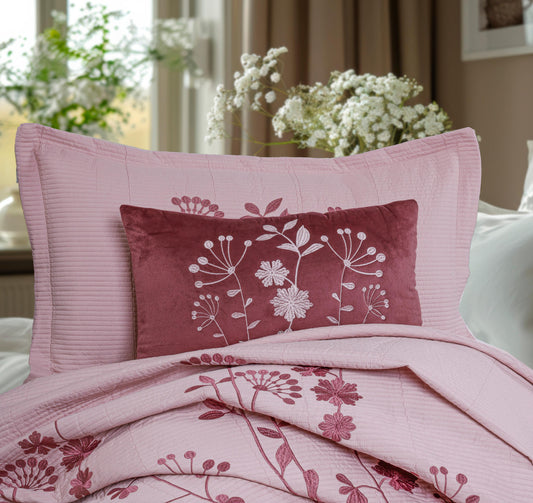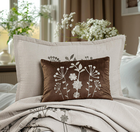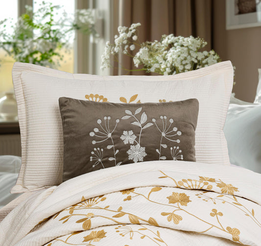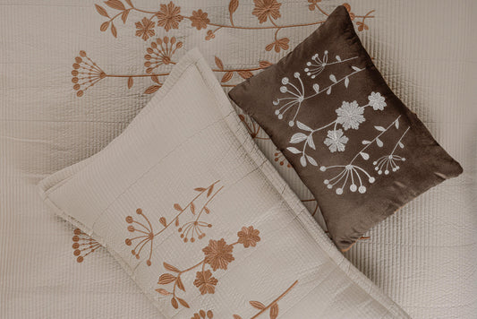 King Size Embroidered Quilted Bedcover Set – 5 Pc | Luxury Bedcover + Pillow Covers + Cushions with Filler