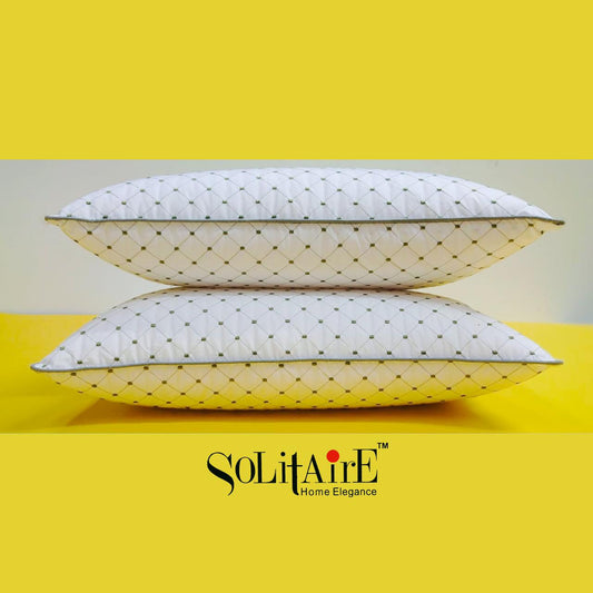 ✨ Solitaire Bliss Cotton Embroidered Pillow Pair – Ultra Soft, Fancy Edges, 100% Cotton (2 Pieces) ✨