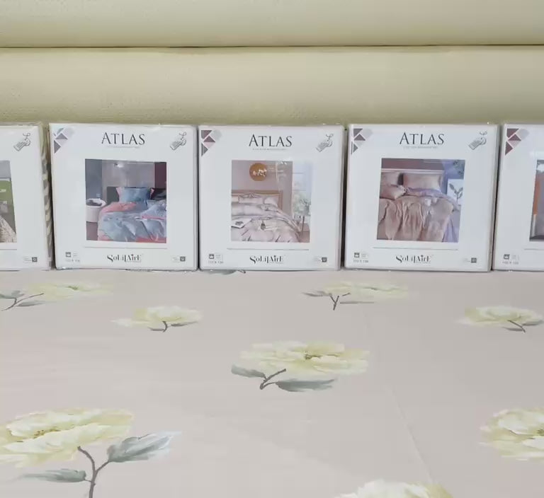 Featuring a panel design with coordinated pillow covers, the ATLAS bedsheet combines soothing colors with attractive patterns that enhance the beauty of your room. Designed in a generous king size (100 x 108 inches), it offers a perfect fit for your large bed while ensuring durability and long-lasting comfort.