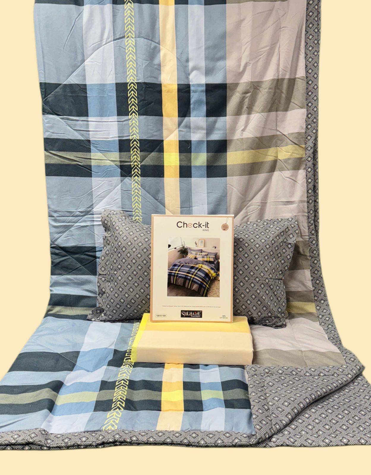 Check It King Size Comforter Set – 4 Piece Reversible Bedding