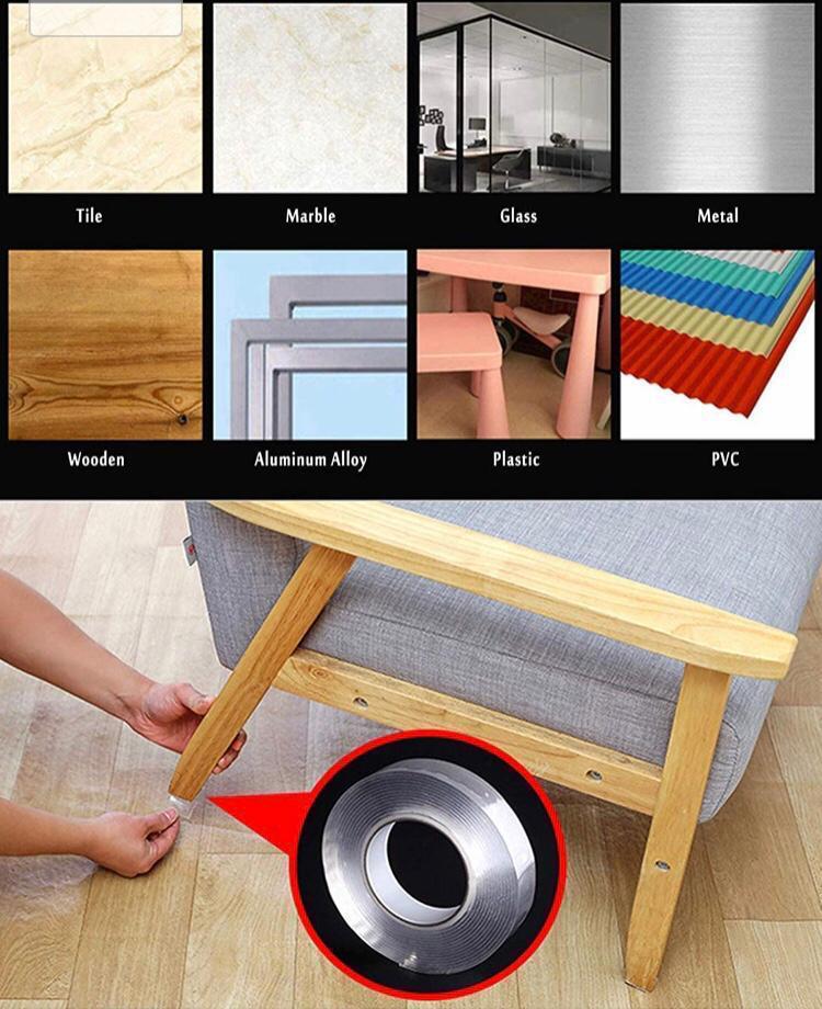 HIGH QUALITY MATERIAL - The gel tape double sided is made of nano pu gel, durable, double-sided adhesive, transparent, will not leave traces on the wall or any surface. Anti slip ,can be cut, washable, reusable