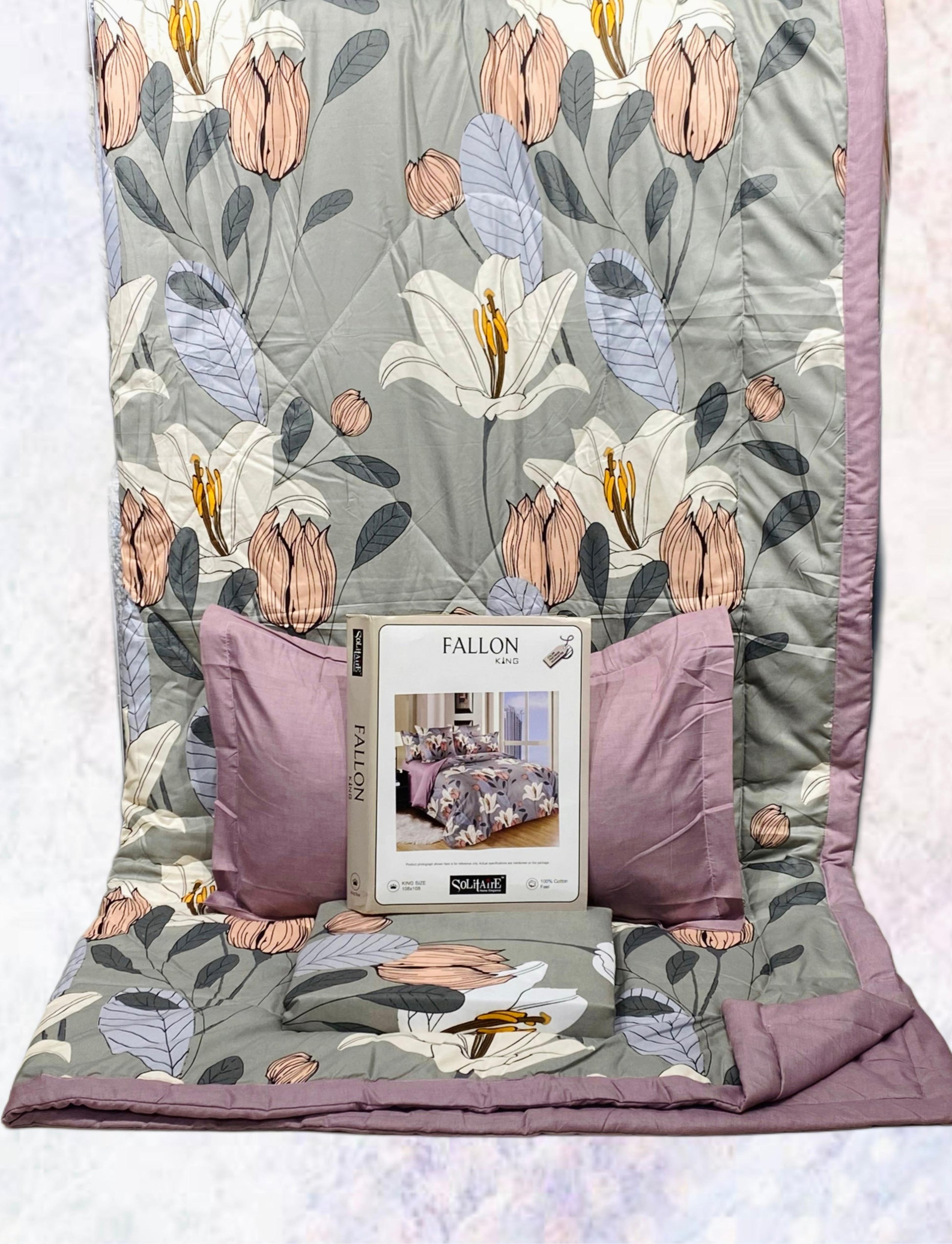 Upgrade your bedroom with the luxurious FALLON King Size Comforter Set, designed for ultimate comfort and style. Made with premium glazed cotton fabric, this 4-piece bedding set is soft, breathable, and durable — perfect for year-round use.