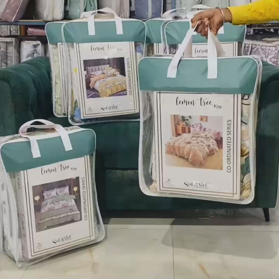 Add A Touch Of Freshness And Elegance To Your Bedroom With The Lemon Tree King Sized Complete Comforter Set. Crafted From Heavy Glazed Cotton, This Set Offers An Ultra Soft Feel And Luxurious Look, Making It Perfect For Everyday Comfort And Sophisticated Décor.