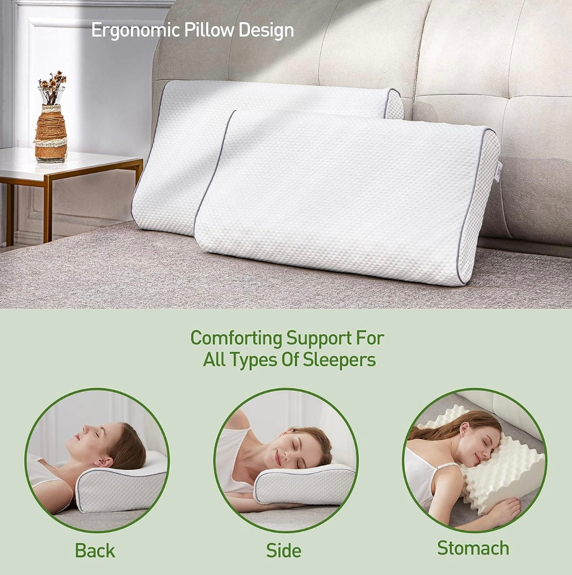 Designed with your well-being in mind, "Natural Latex" Pillow features an ergonomic design that aligns your spine and enhances sleep posture. Experience the luxury of waking up refreshed, without the aches and discomfort that can often accompany improper sleep support.