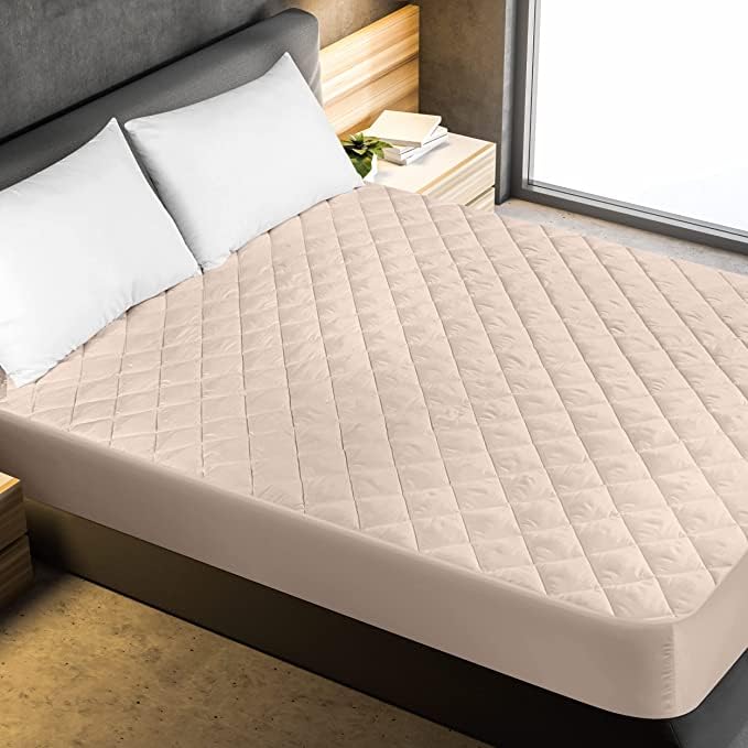 Waterproof Quilted Mattress Protector King Size with Elastic all around (Beige)